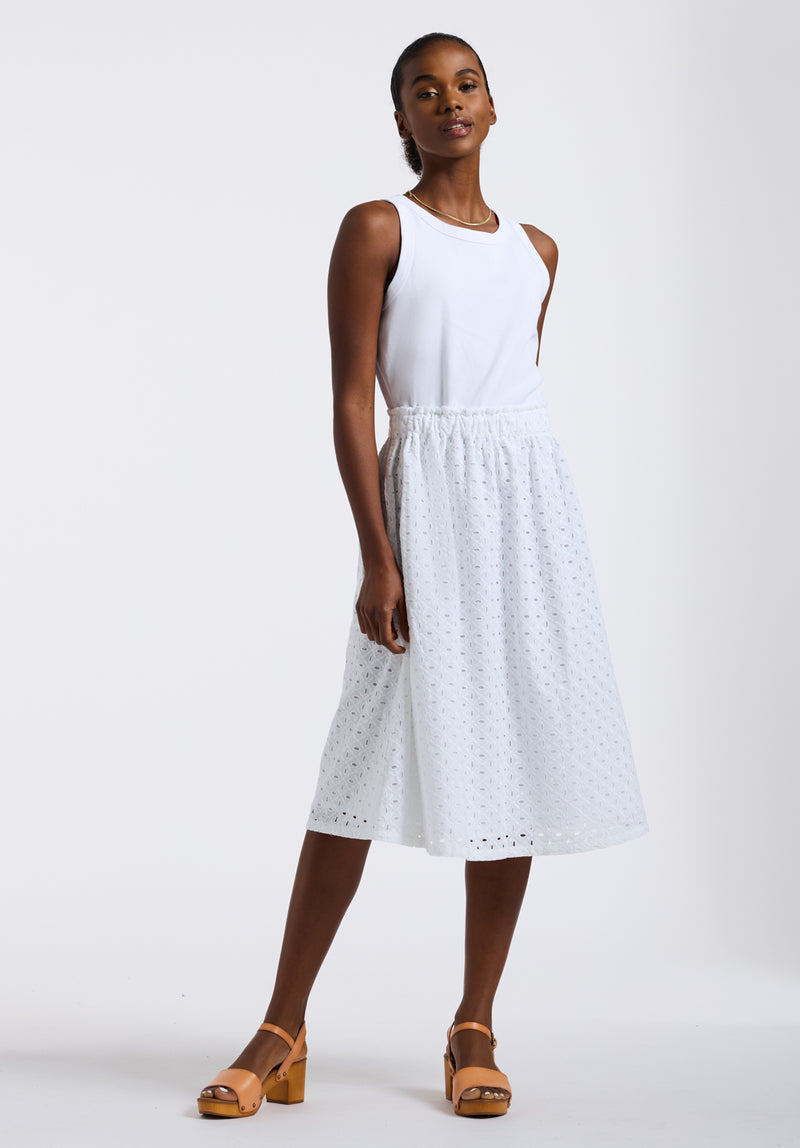 Drea Women's Tank Dress with Eyelet Embroidered Skirt, White - WD0067P