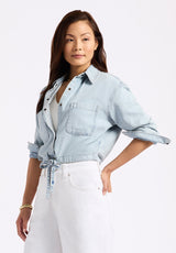 Serena Women's Long-Sleeve Cropped Denim Shirt, Bleached Down Blue - BL16021