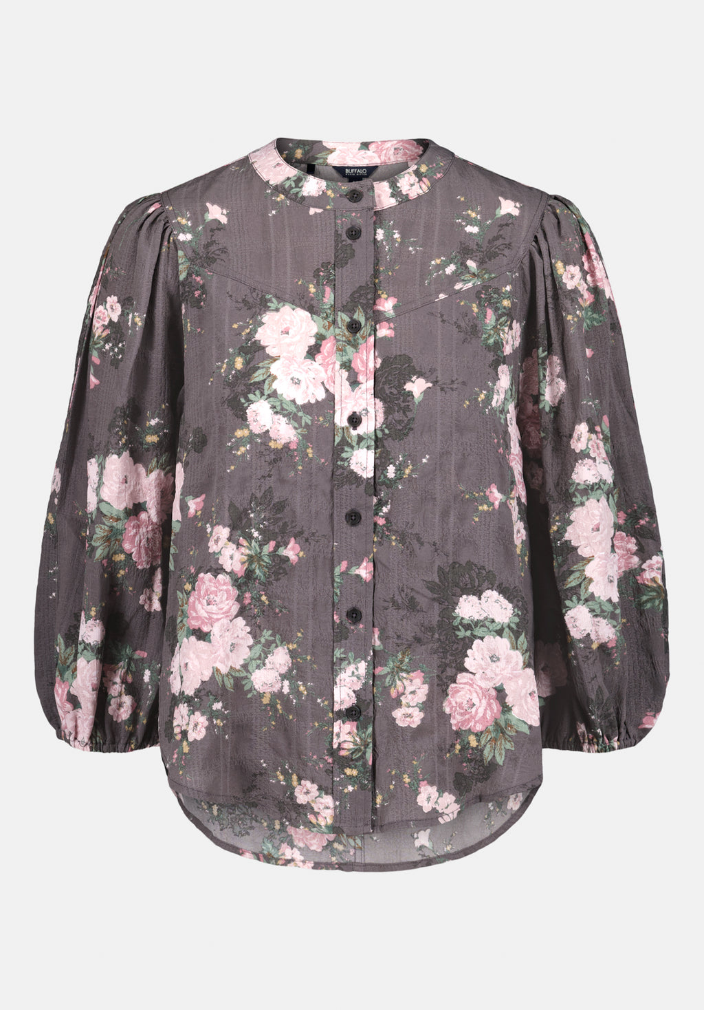 Refresh your everyday style with this romantic floral blouse featuring puff sleeves, button front, and a soft textured finish. A versatile piece perfect for pairing with jeans or skirts.