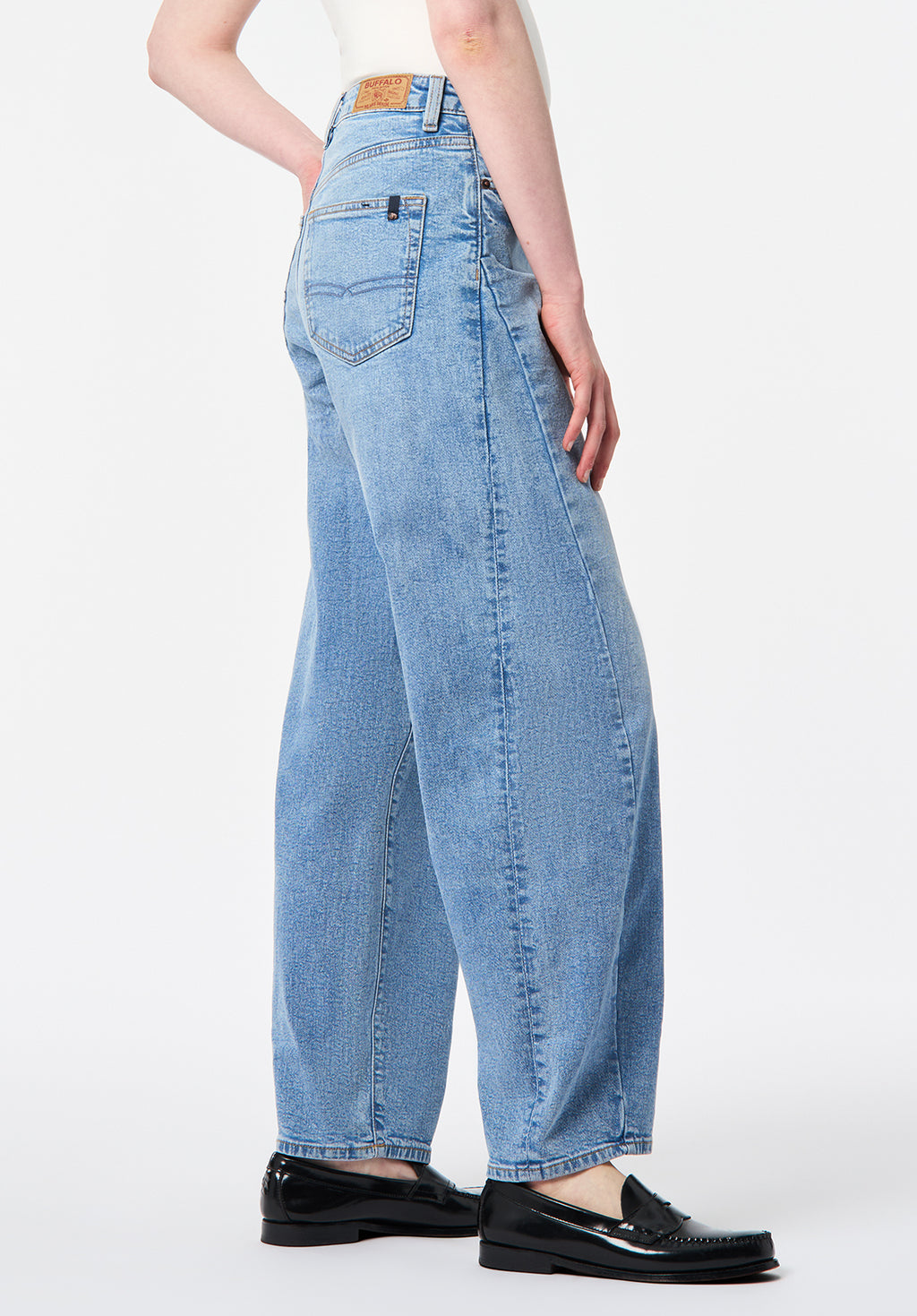 Embrace contemporary fashion with these light wash Barbara barrel-leg jeans, designed for a relaxed and statement-making silhouette. Featuring a high-rise waist and gently curved legs, these jeans deliver a modern twist on classic denim. Crafted from premium-quality fabric, they ensure all-day comfort and durability. Complete with subtle fading, functional pockets, and a zip-fly closure, these jeans pair perfectly with fitted tops or oversized shirts for a trendy and effortless look.