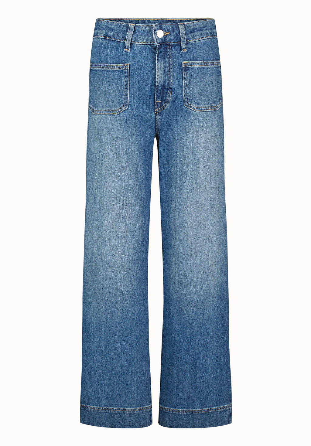 Wide leg | High rise: 11.5" | Leg opening: 21" | Inseam: 32" |Measurements taken from a size 27 waist and may vary slightly. Model is wearing a size 27. Height: 5'9.5", Waist: 27'', Hips: 37".