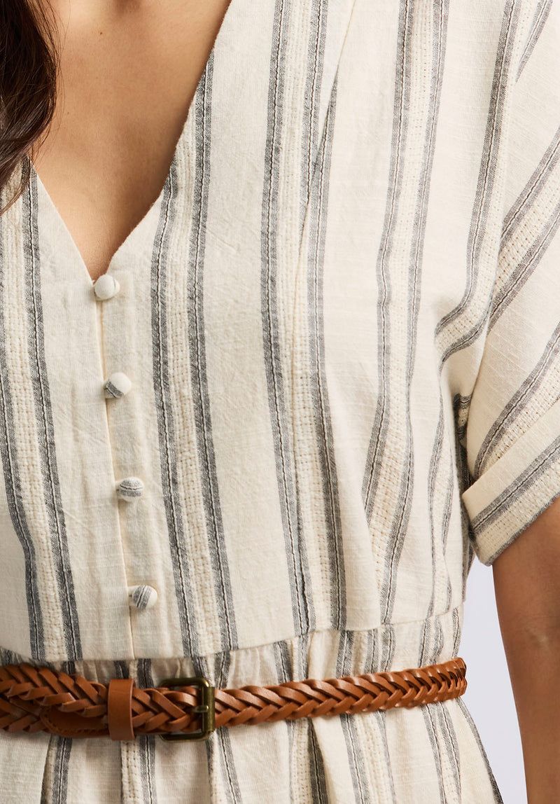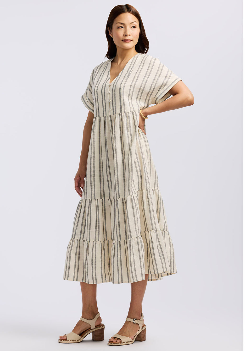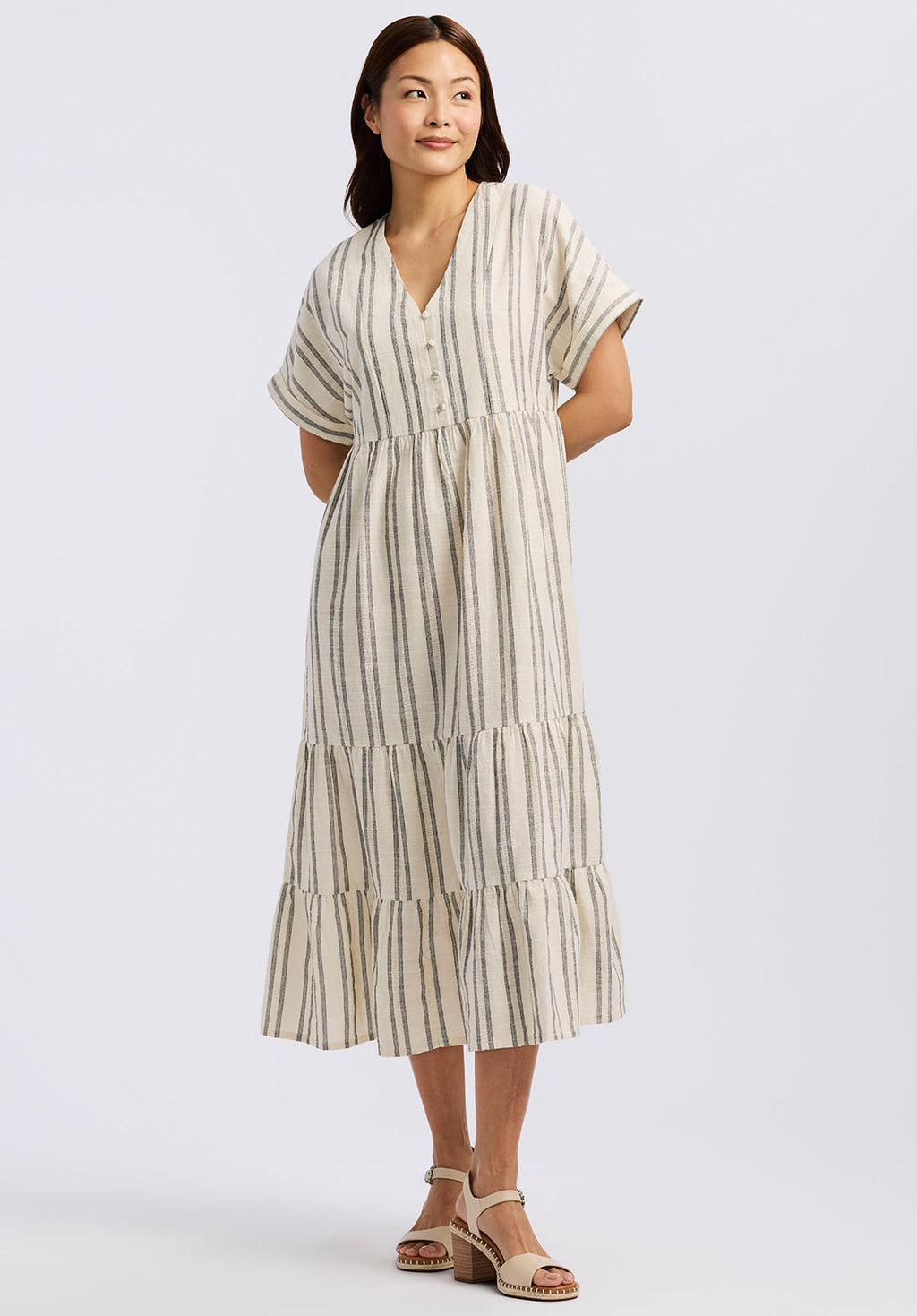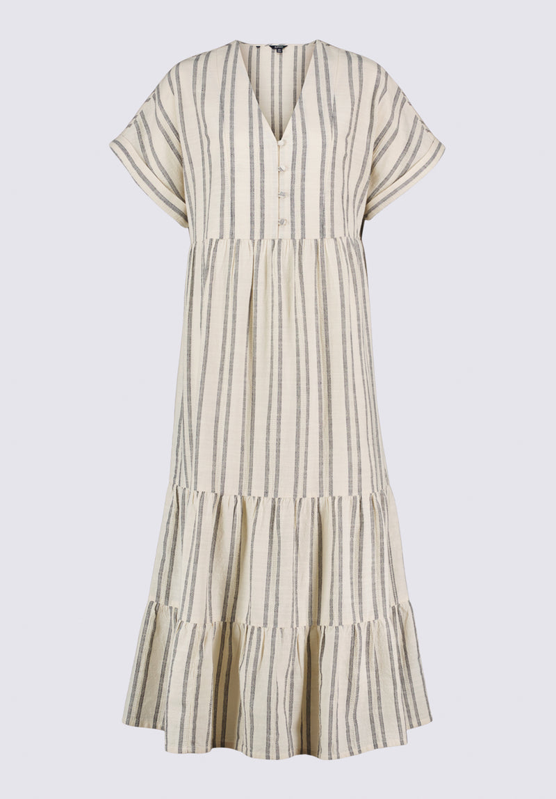 Aurinda Women's Tiered Striped Midi Dress, Parchment - WD0094P