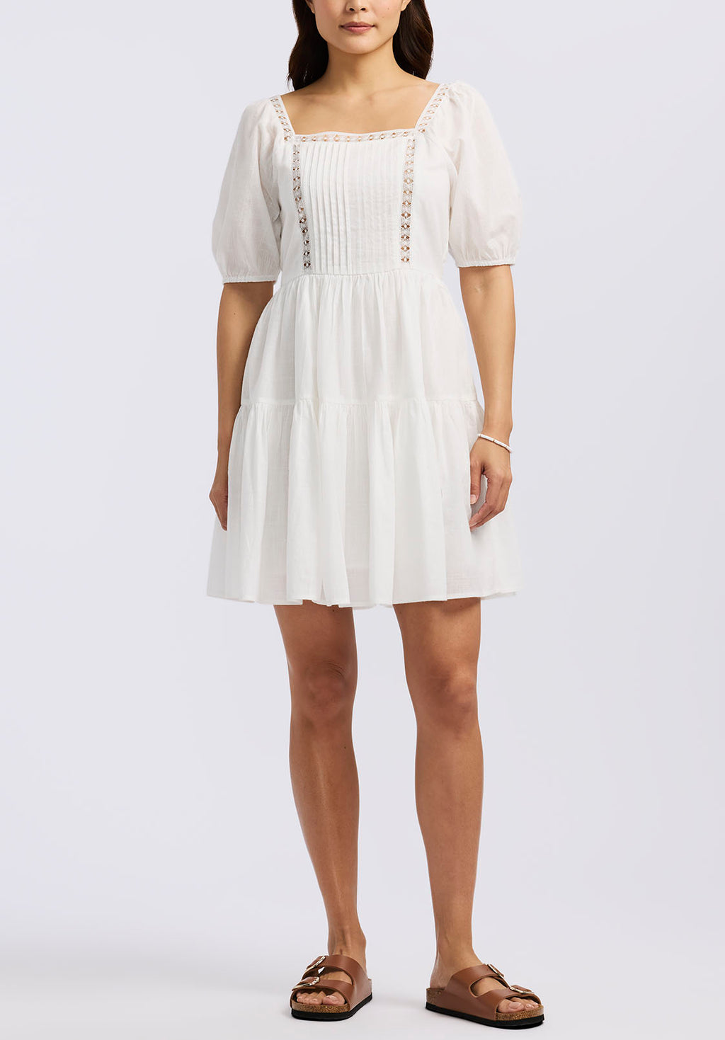 Lara Jean Women's Eyelet Trim Mini Dress, Bright White - WD0100P