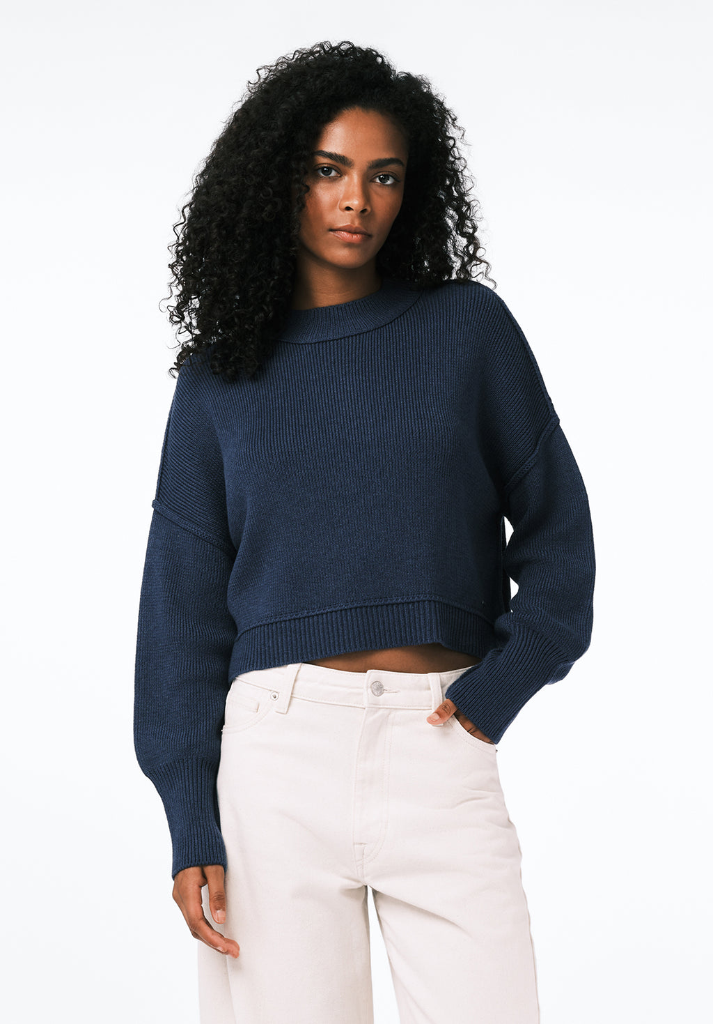 Seema Women's Dropped Sleeve Loose-Fit Cropped Sweater, Oceana - SW0142
