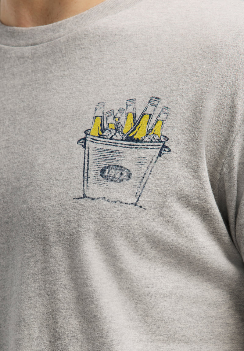 Celebrate chill vibes and sunny days with the Thirsk men's graphic t-shirt. Made from soft, breathable cotton, this tee features a fun illustrated ice bucket full of bottles printed on the front chest and a bold “Spirit of Summer” graphic on the back. The heather grey color makes it a laid-back essential, perfect for beach days, BBQs, or casual hangouts. Just pair with denim or shorts and you're good to go.