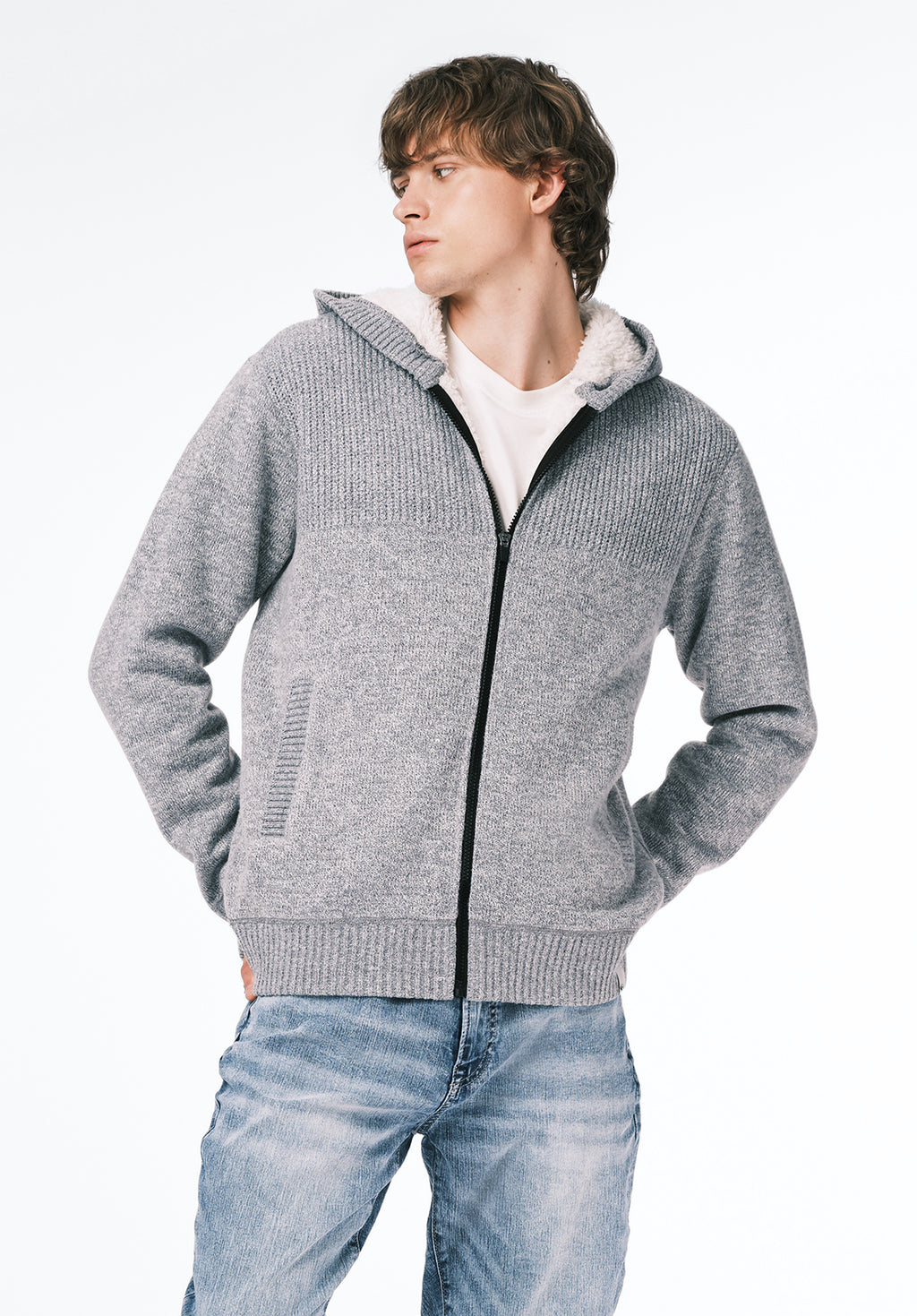 Walmick Men's Full-Zip Knit Hooded Jacket with Sherpa Lining, Heather Grey - BM24739